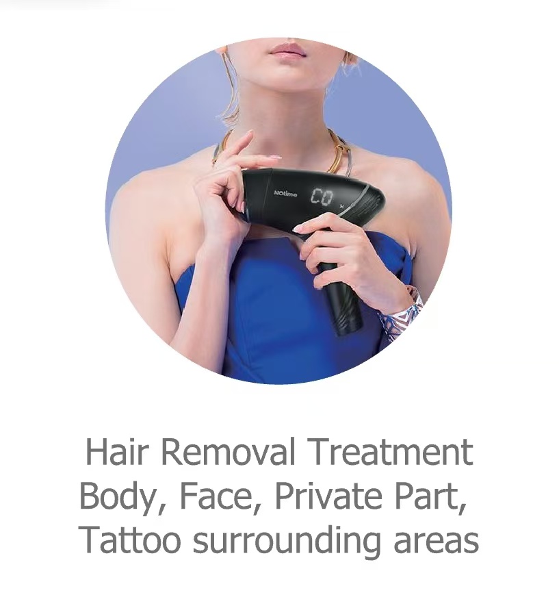 adopts the latest dual Ice technology to bring a healthy and comfortable painless hair removal experience. It comes with extra care heads for skin care, hair removal, and treatment around the tattoo.