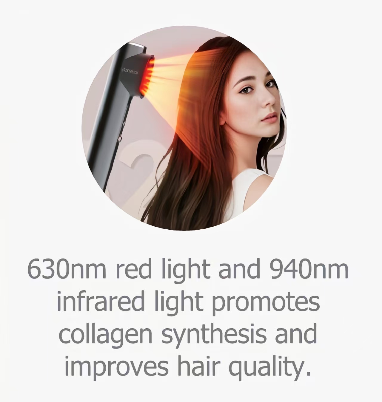 Discover the luxury of our high-speed hair dryer, featuring advanced red and infrared light technology for rapid drying and superior hair health.