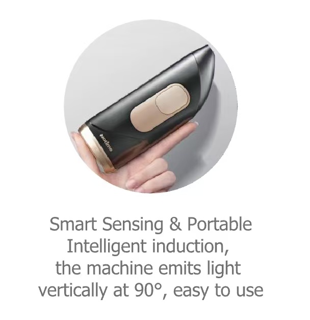 Small size portable hair removal device for home use. Combined with beautiful arc lines and ergonomic design,Easy to operate with left and right hands.