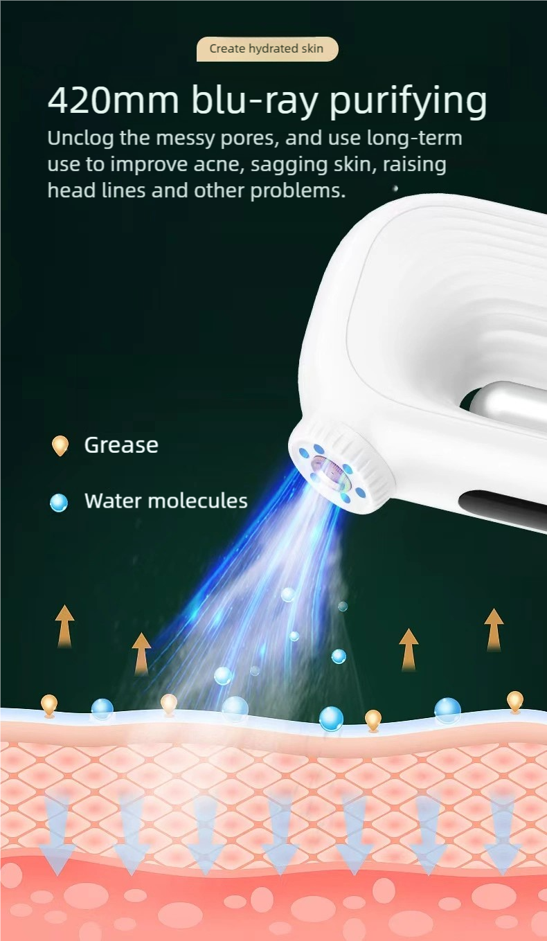 – 420NM blue light cleansing mode: Unclogs dirty and clogged pores. Long-term use helps improve acne and pimples, as well as issues like skin sagging and forehead wrinkles.