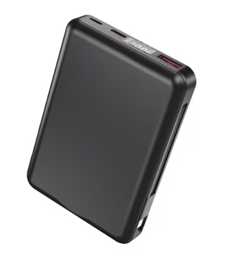 Type-C Input: 5V/2A Lightning Input: 5V/2A Built-in Cable Type-C Output: 5V/2A Built-in Cable Lightning Output: 5V/2.4A Wireless Charging Output: 5W/7.5W/10W/15W Battery Capacity: 10000mAh Rated Capacity: 5600mAh Dimensions: 104*72*19mm Bare Unit Weight: 198g / Finished Product Weight: 279g Packing Standard: 56 pcs per carton / Packing Weight: 16.1KG Carton Specification: 565*525*260mm Certifications: CE, FCC, ROHS, 3C
