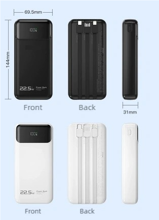 – Size data (taking the black model as an example, measured from different angles): Front width 69.5mm, height 144mm; The back and other views show the built-in three-cable storage structure; Side thickness 31mm