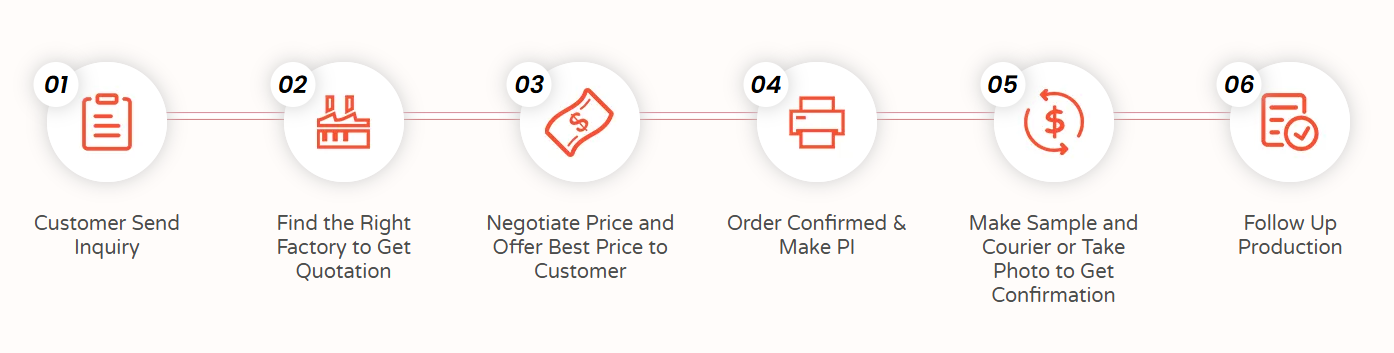 As a sourcing agent, we not only source products and factories for our clients, but also provide the following service which includes booking hotel, finding direct factory, negotiating a competitive price, making PI, taking a photo, making sample, or opening a new mold, following up mass production, doing quality control, booking container and making customs clearance document, etc. Except above service, we can also provide services that clients require. We do more than you think.